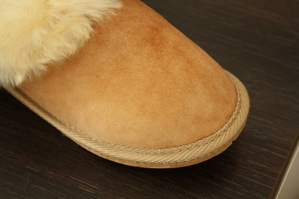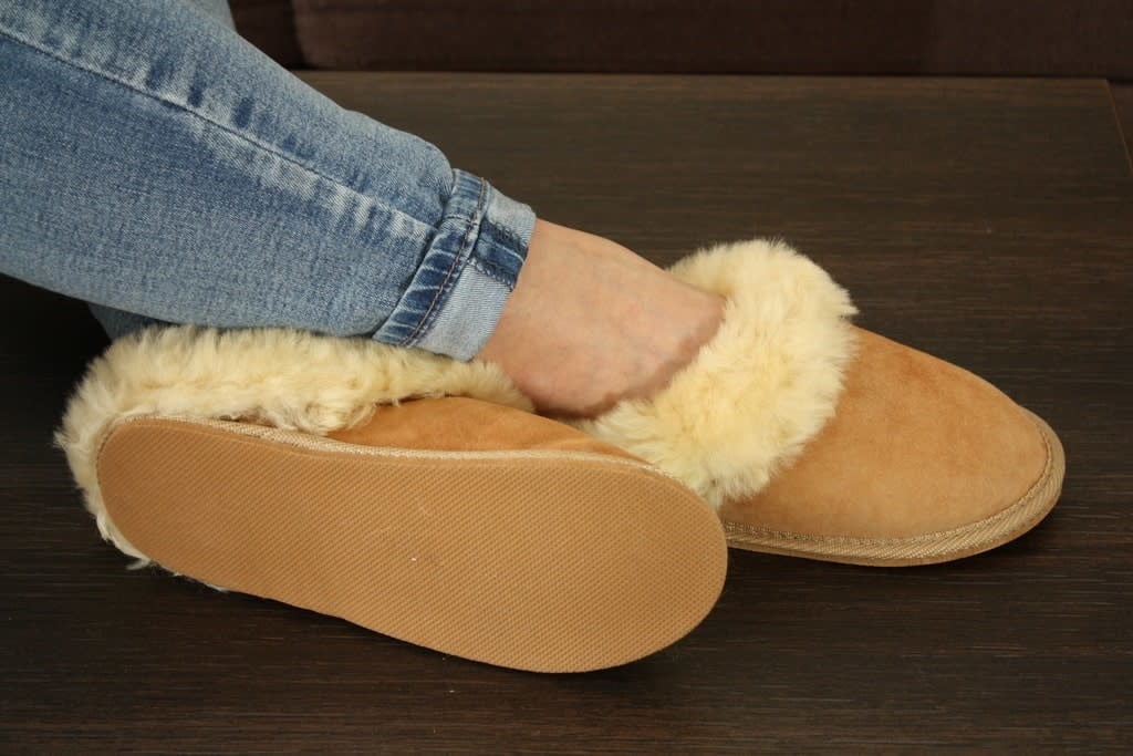 Dankzij de zachte, pluchen schapenvacht verwarmen deze pantoffels je voeten op winteravonden en zijn ze tegelijkertijd perfect en luchtig voor de zomer. Pluizig en knus, deze pantoffel omhult je voeten het hele jaar door in luxe. Lichtgewicht flexibele rubberen zool zorgt voor grip